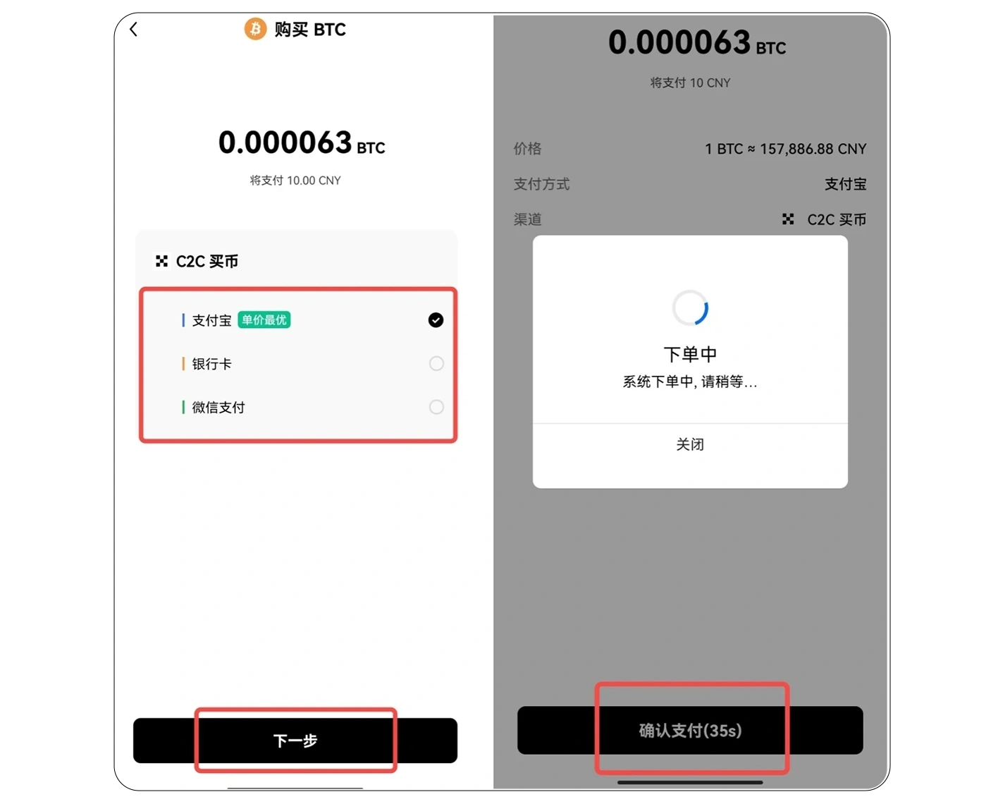 通过平台匹配买卖双方,支持法币直接购买数字货币,流程简单但需谨慎选择交易对手。